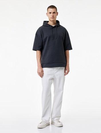 Kısa Kollu Kapşonlu Pamuklu Oversize Spor Sweatshirt