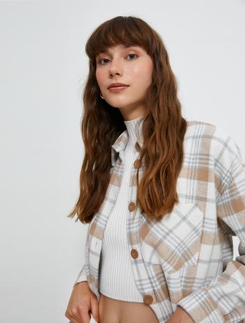 Crop Gömlek Cep Detaylı Kısa Kollu Düğmeli Klasik Yaka
