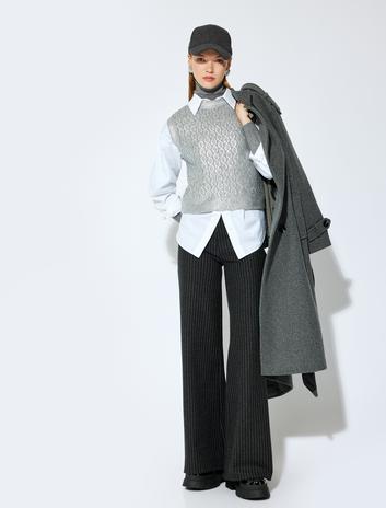 Koton X Şahika Ercümen - Yumuşak Dokulu Çizgili Geniş Paça Pantolon