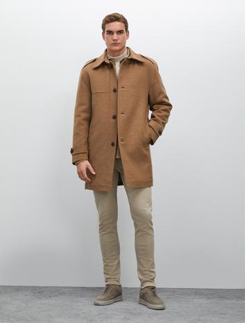 Uzun Kaban Kaşe Düğme Detaylı Cepli Klasik Yaka Sepete Ekle