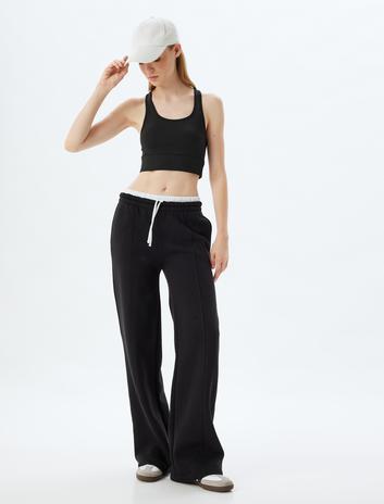 Yüksek Bel Eşofman Altı Çift Bel Detaylı Nervürlü Beli Bağcıklı