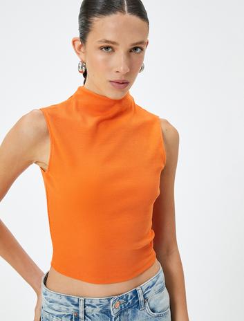 Fitilli Atlet Crop Dik Yaka Kolsuz Pamuklu