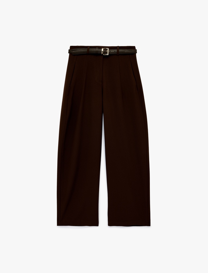 Cepli Pileli Kemerli Geniş Paça Kumaş Pantolon Sepete Ekle