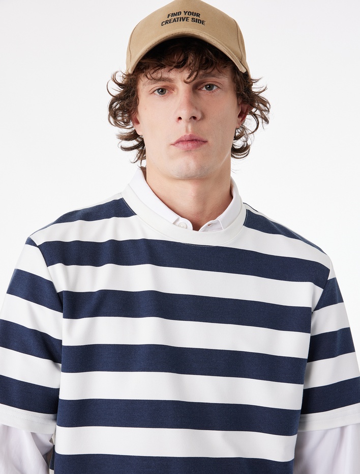 Regular Fit Viskon Karışımlı Kısa Kollu Bisiklet Yaka Çizgili Tişört Sepete Ekle