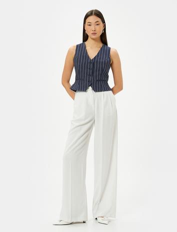 Crop Yelek Düğmeli Fleto Cepli Slim Fit V Yaka Sepete Ekle