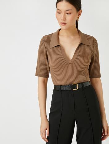 Polo Yaka Triko Kazak Kısa Kollu Kaşmir Dokulu