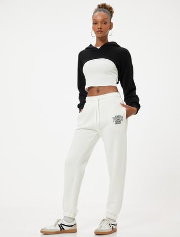 Şardonlu Jogger Eşofman Altı Beli Bağcıklı Kolej İşlemeli Cepli Rahat Kalıp Sepete Ekle
