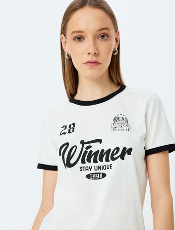 Pamuklu Kısa Kollu Bisiklet Yaka Baskılı Tişört