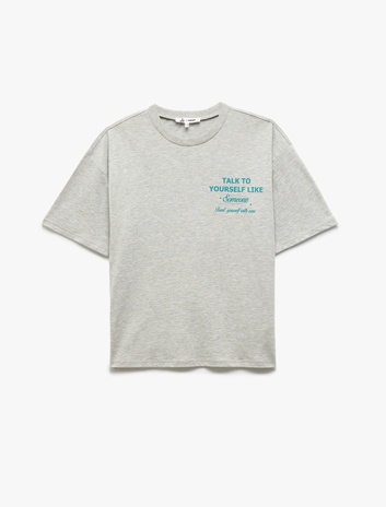 Pamuklu Kısa Kollu Bisiklet Yaka Baskılı Tişört Sepete Ekle
