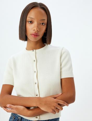 Triko Hırka Kısa Kollu Bisiklet Yaka Metal Düğmeli Slim Fit Sepete Ekle