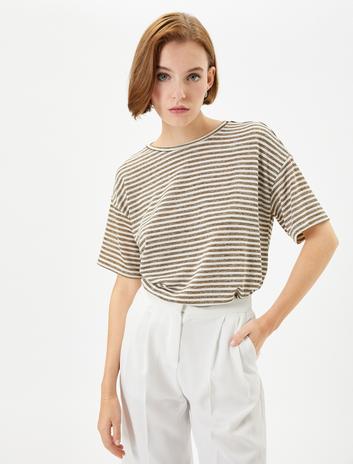 Kısa Kollu Bluz Bisiklet Yaka Düşük Omuzlu Sepete Ekle