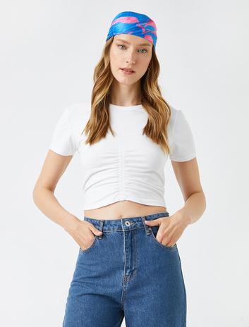 Crop Bisiklet Yaka Büzgü Detaylı Kısa Kollu Tişört Pamuklu Sepete Ekle