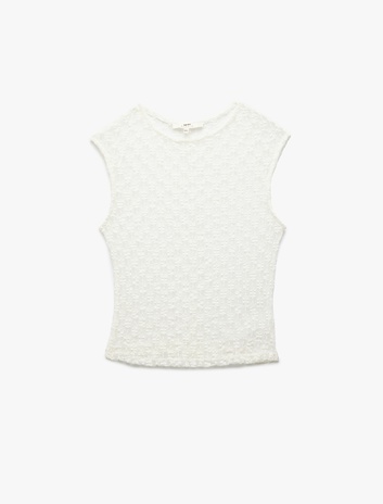 Kolsuz Bisiklet Yaka Dokulu Dantel Bluz