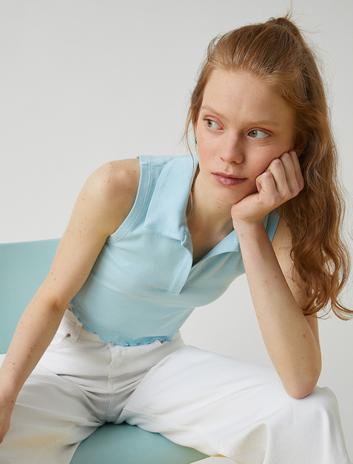 Polo Yaka Kolsuz Pamuklu Crop Atlet Sepete Ekle