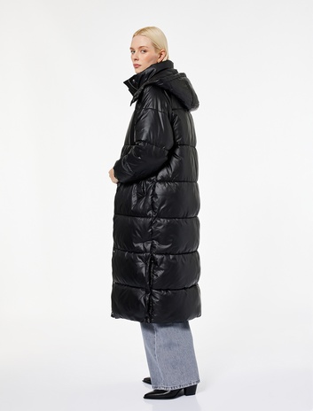 Fermuarlı Çıkarılabilir Kapüşonlu Uzun Kollu Oversize Uzun Şişme Mont
