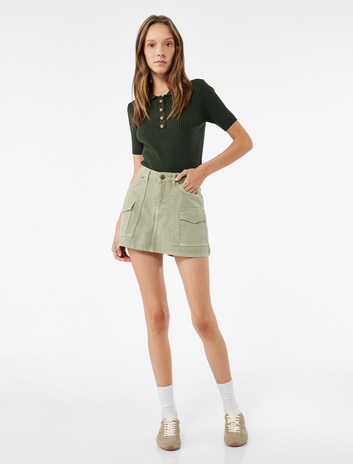 Pamuklu Kargo Cep Detaylı A Kesim Mini Etek