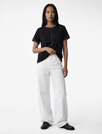 Pamuklu Kısa Kollu Bisiklet Yaka Dikiş Detaylı Tişört Sepete Ekle