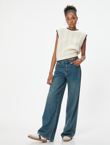 Kolsuz Süveter Örgü Dokulu Bisiklet Yaka Sepete Ekle