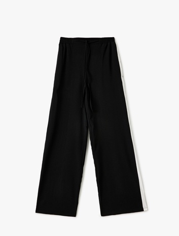 Geniş Paça Cepli Beli Bağcıklı Şerit Detaylı Pantolon