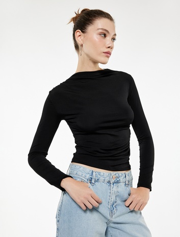 Drape Detaylı Dar Kesim Uzun Kollu Tişört