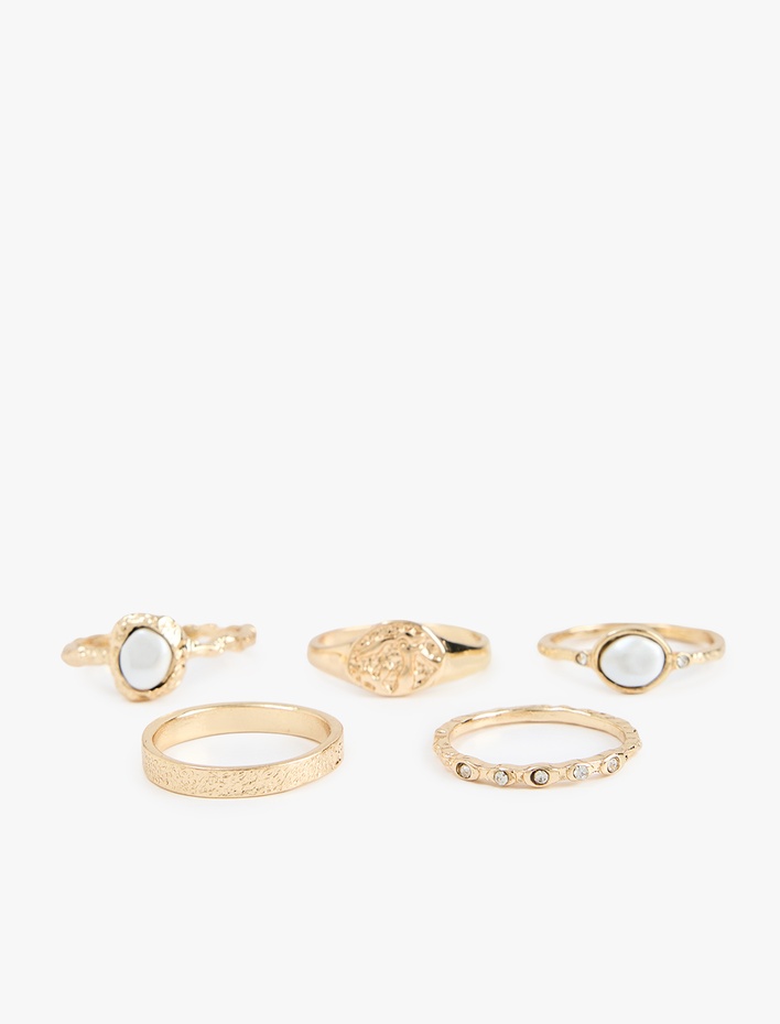 Taş Detaylı Dokulu 5'li Yüzük Seti Sepete Ekle