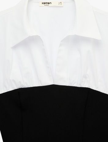 Pamuklu Slim Fit Renk Kontrastlı Kısa Kollu Korse Detaylı Gömlek Sepete Ekle