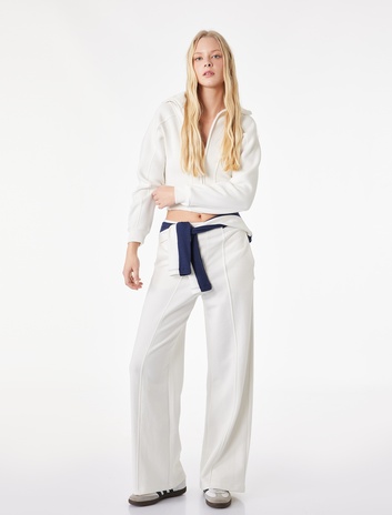 Koton X Şahika Ercümen - Koyun Yünü Karışımlı Pileli Geniş Paça Pantolon Sepete Ekle