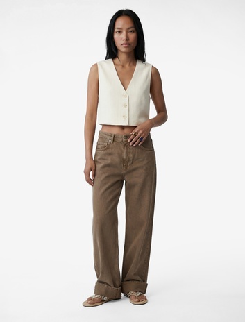 Keten Karışımlı V Yaka Kruvaze Düğmeli Yelek Sepete Ekle