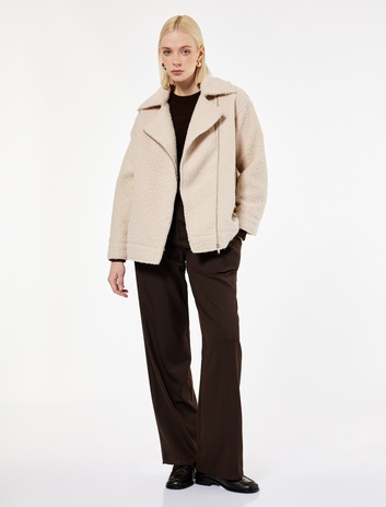 Uzun Kollu Cepli Fermuar Detaylı Kısa Buklet Kaban Sepete Ekle