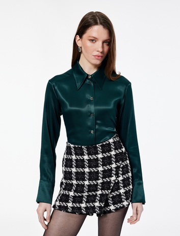 Koton X Melis Ağazat - Uzun Kollu Metalik Düğme Detaylı Saten Gömlek Sepete Ekle