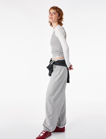Yüksek Bel Rahat Kalıp Grogren Detaylı Spor Geniş Paça Eşofman Altı