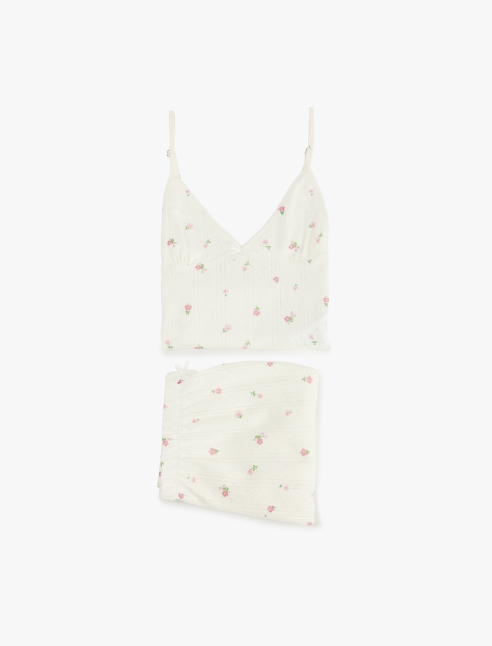 Rahat Kesim Kolsuz V Yaka Pamuklu Çiçekli Pijama Takımı - 2'li Set Sepete Ekle