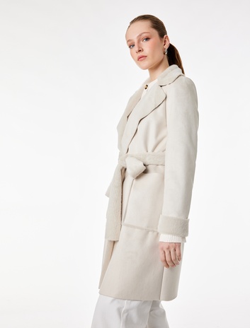 Uzun Kollu Cepli Kemerli Yakası Suni Kürklü Bonded Kaban Sepete Ekle