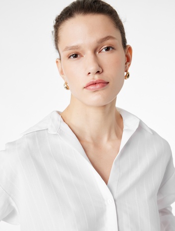 Regular Fit Uzun Kollu Klasik Yaka Çizgili Taşlı Gömlek Sepete Ekle
