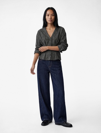 Pens Detaylı Uzun Kollu V Yaka Düğmeli Ekose Gömlek Sepete Ekle