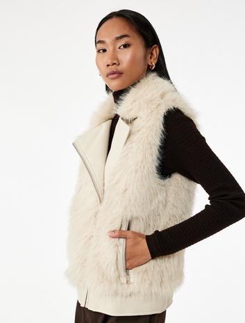 Kolsuz Fermuarlı Cepli Crop Suni Kürk Yelek