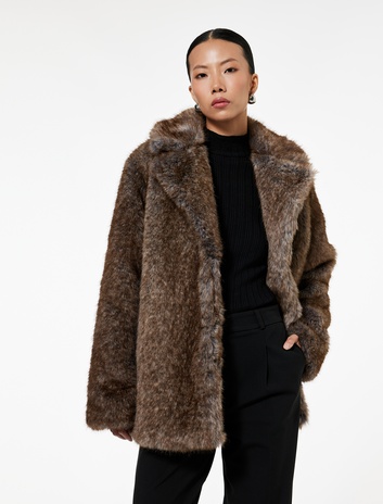 Koton X Melis Ağazat - Düğmeli Uzun Kollu Suni Kürk Kaban