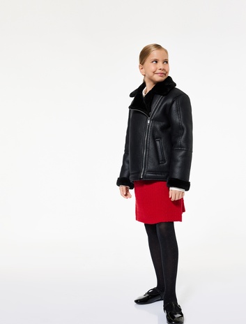 Kız Çocuk Kruvaze Yaka Uzun Kollu Suni Deri Ceket