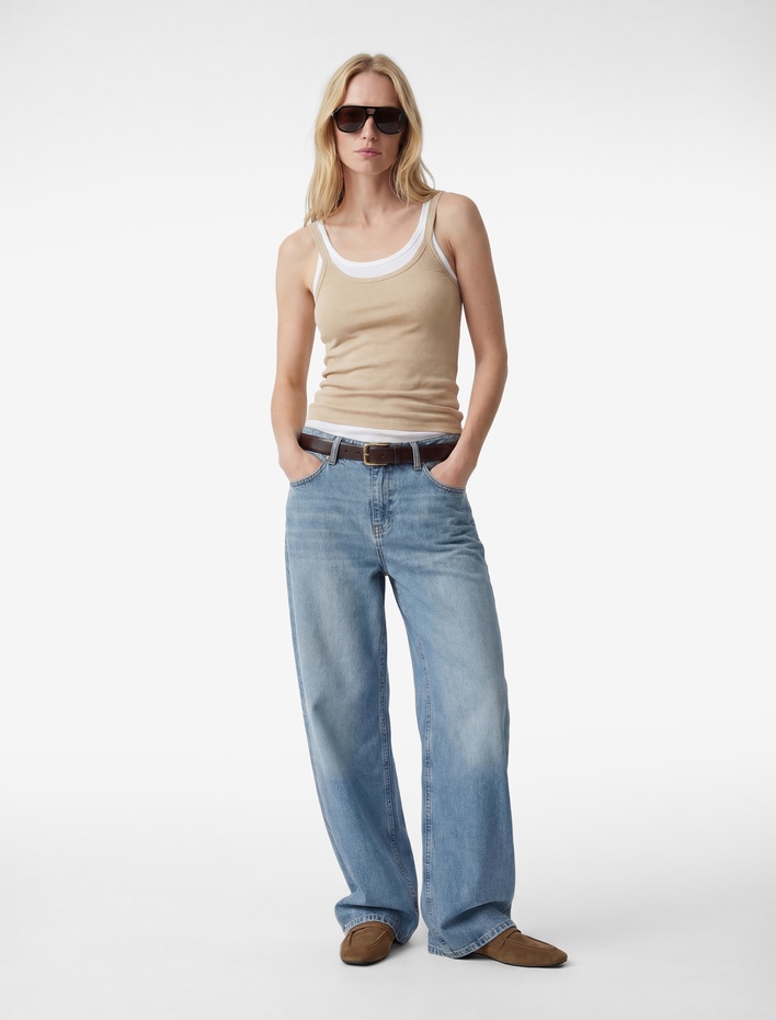 Beli Bağcıklı Cep Detaylı Geniş Paça Jean Pantolon Sepete Ekle