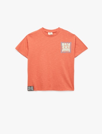 Pamuklu Kısa Kollu Bisiklet Yaka Baskılı Tişört Sepete Ekle