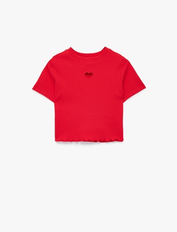 Pamuklu Kısa Kollu Kalp Pencere Detaylı Crop Tişört Sepete Ekle