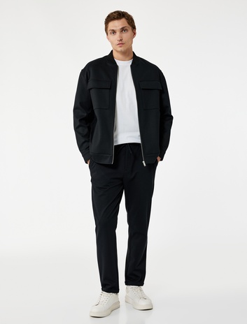 Cep Detaylı Düğmeli Pike Kumaş Beli Bağcıklı Pantolon
