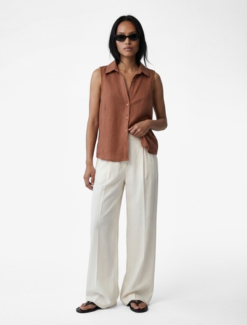 Keten Görünümlü Düğmeli Kolsuz Gömlek Sepete Ekle