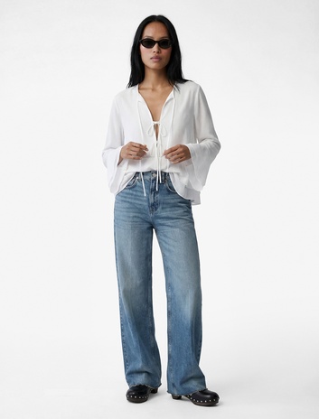 Uzun İspanyol Kollu Bağcıklı Yaka Fırfırlı Bluz Sepete Ekle