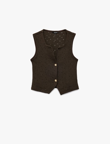 Düğmeli V Yaka Ajurlu Triko Yelek