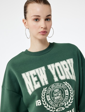 Şardonlu Baskılı Uzun Kollu Bisiklet Yaka Oversize Sweatshirt