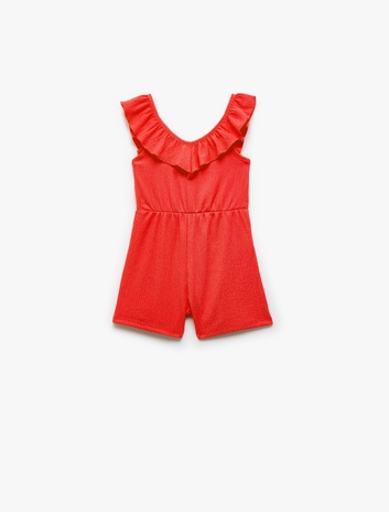 Fırfır Detaylı V Yaka Askılı Kısa Tulum Sepete Ekle