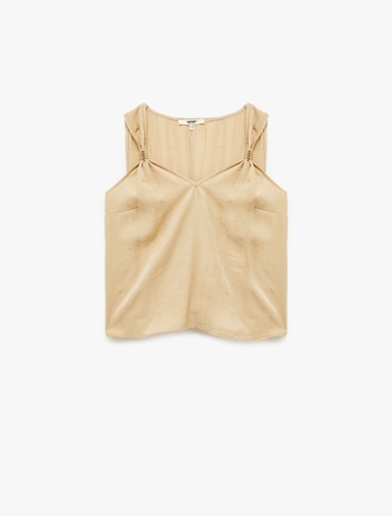 Viskon Kumaş Aksesuar Detaylı Kolsuz Bluz