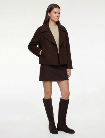 Cepli Kruvaze Uzun Kollu Düğmeli Kısa Kaşe Mont Sepete Ekle