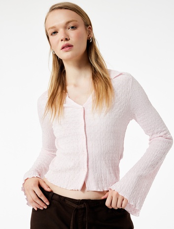 Ajurlu Düğmeli Uzun Kollu Polo Yaka Tişört